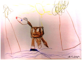 Vinci měl v lese své místečko, kde lesní jahody určitě najde, palouček schovaný v hustém lese. Pospíchal, aby maminka nemusela dlouho čekat a těsto jí neuteklo. A jak si tak mašíruje lesní stezkou, zdá se mu, že slyší jakési naříkání. A znovu. Ozývalo se nejdříve jakoby z dálky, ale po chvíli už bylo hlasitější, zblízka. Šel po tom hlase, opustil stezku a prodíral se za hlasem, který byl čím dál blíž, křovím. Rozhrnoval zrovna větve mladého smrčku, a tu se před ním otevřel pohled, až celý zkoprněl.