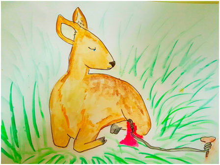 Srnka byla překvapená snad ještě více než on! Leknutím sebou škubla, očekávajíce, že si pro ni přišli pytláci jako pro svoji kořist. Na okamžik se jejich vylekané oči setkaly. Vinci měl rád les i všechna zvířátka, které v něm žijí. Hned věděl, co má dělat. Přiblížil se pomalu k srnce a pohladil ji. „Počkej, pomůžu ti. Jen zůstaň chvilku stát v klidu a nevrť se.“ Srnka poslechla a Vinci uvolnil oko pevně zatažené kolem nožky srnky. Ta si hbitě nožku osvobodila z pasti a plaše po několika skocích zmizela v lese. Vinci se dal do odstraňování nastraženého oka. Když viděl, jak je drát celý zkrvavený, uvědomil si, jak nožka srnku musí bolet. „Darebáci“, pomyslel si. Když drát z pytláckého oka stočil do klubíčka a strčil do kapsy, vzpomněl si, že maminka čeká, až se vrátí s jahodami. Vydal se je posbírat.