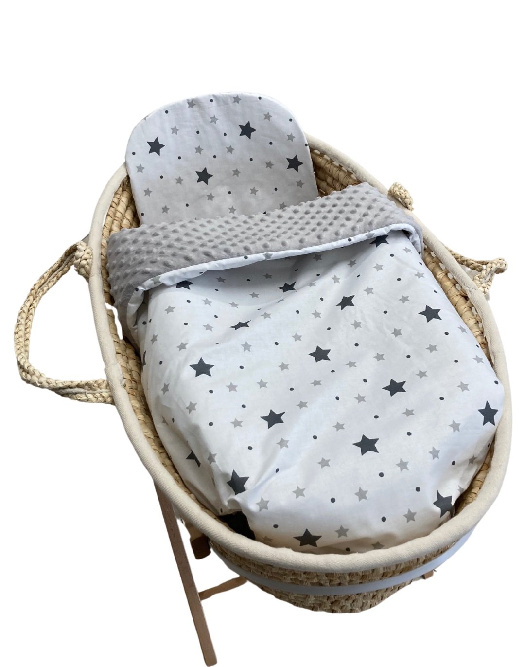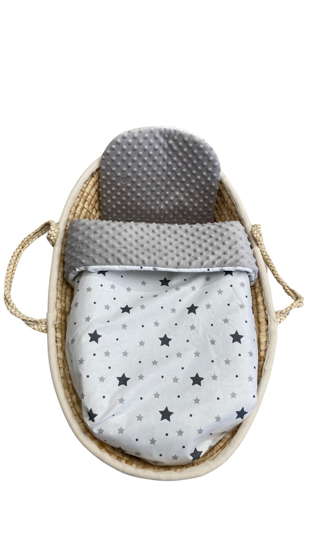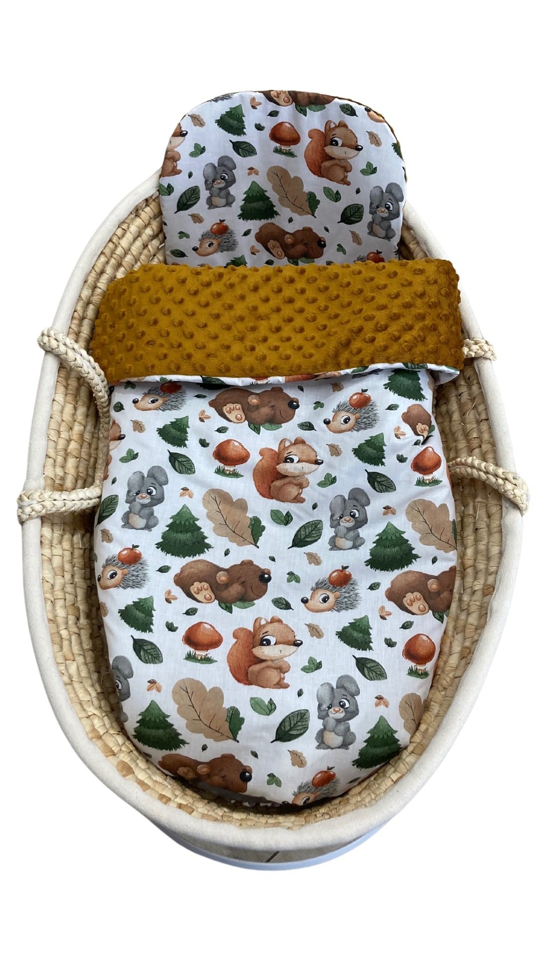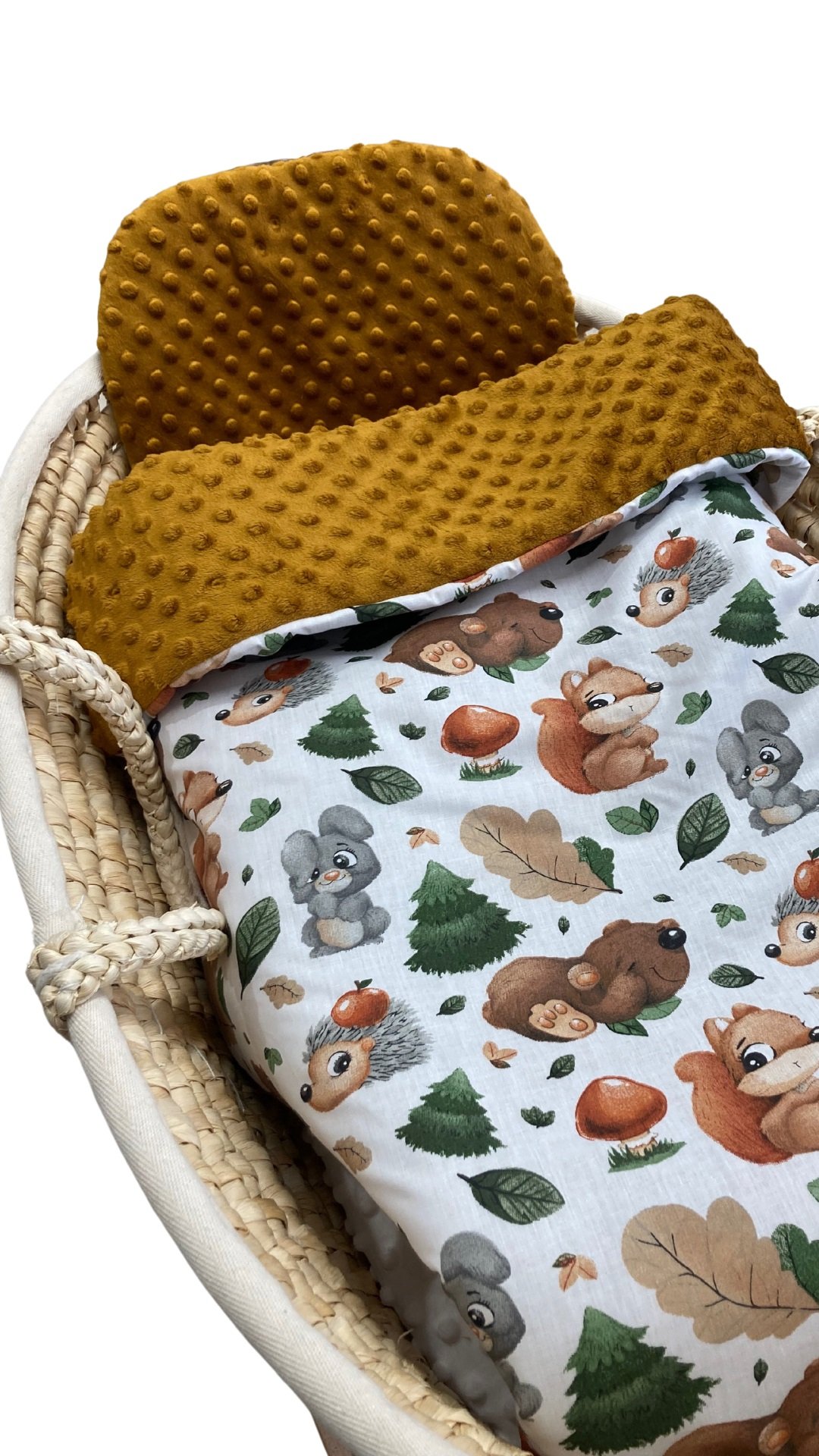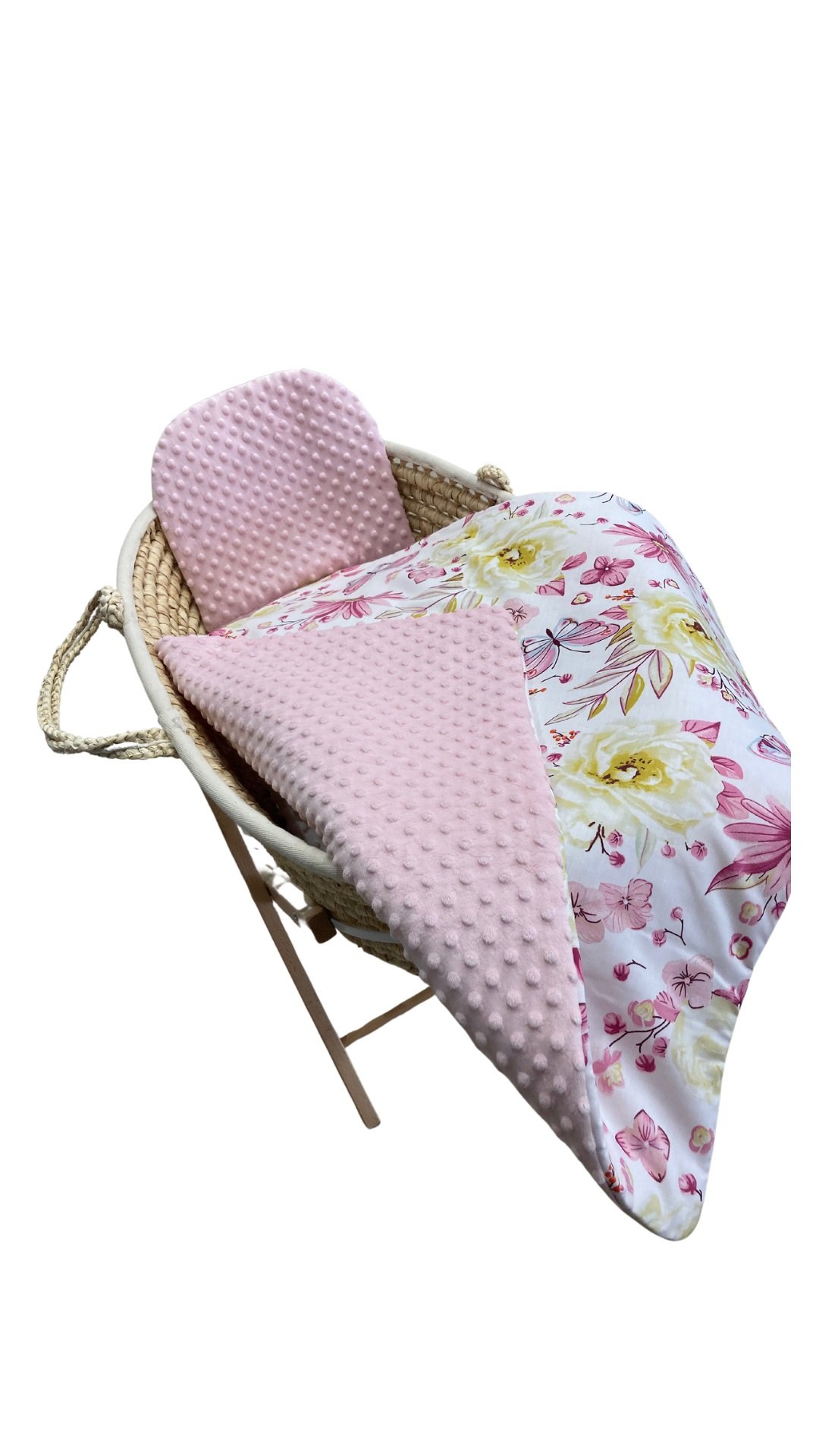 Tato sada do postýlky a kočárku obsahuje plochý polštářek do obloučku a oboustrannou deku.