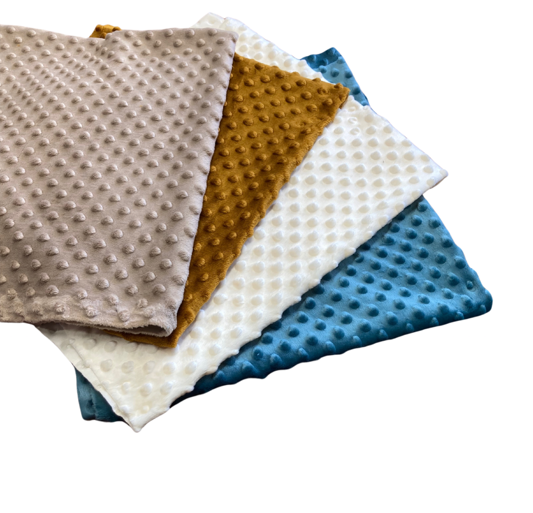 Z jedné strany je deka 100% bavlna s gramáží 125g a z druhé strany minky 350g.