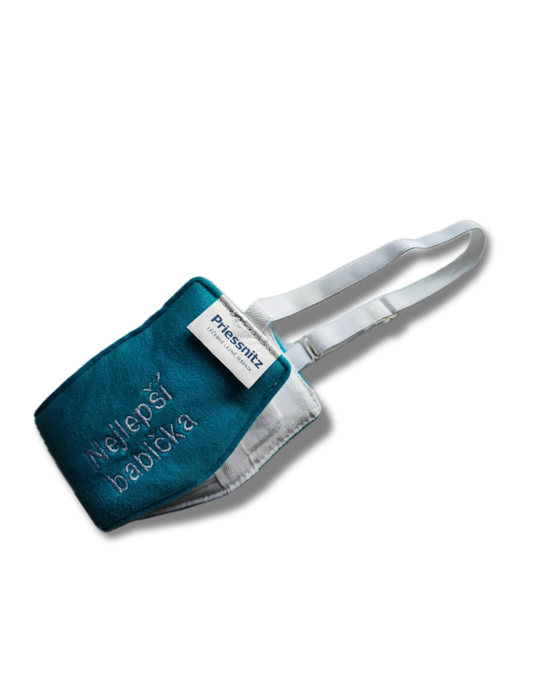 Priessnitzův zábal na hlavu "Nejlepší babička je opakovaně použitelná textilní pomůcka určená k přiložení na oblast čela, ucha či zubu.